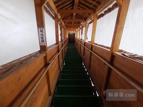 長い廊下を経て男女別大浴場の奥に館外に出るドアがあります。