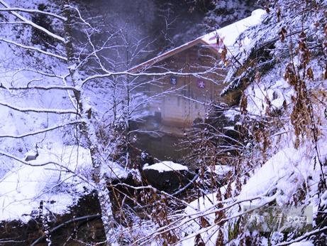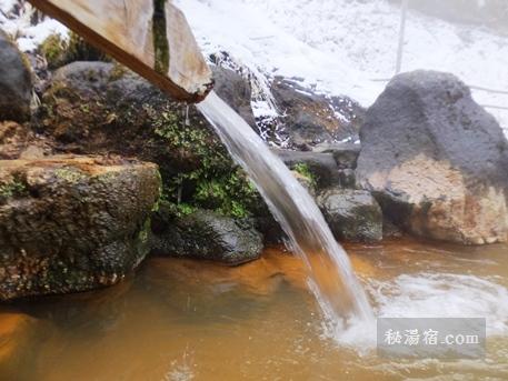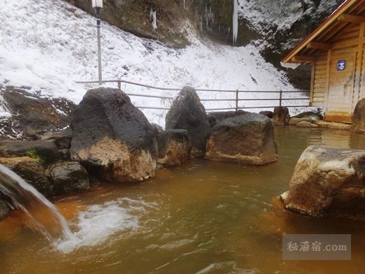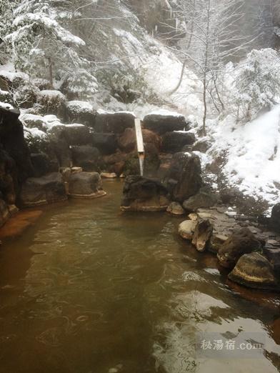 今日は降雪で人も少なそうだったので、まずは渓流露天風呂から。