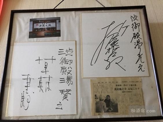 渋御殿湯で「子連れ狼」のロケがあったらしく、主演の萬屋錦之介さんのサインと新聞記事がありました。
