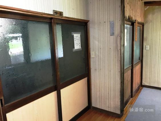 「東館」の大浴場はフロント右の廊下を奥へ、湯治部屋の本館を通り過ぎた突き当りにあります。