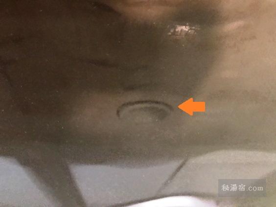 何も知らずに入浴している分には小さいお風呂だなぁくらいにしか思いませんが、よく見ると壁側の部分に小さな丸い穴が。