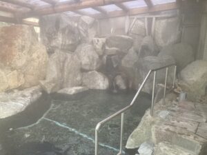 表記は「単純泉」ですが、成分的には「ナトリウム-塩化物・炭酸水素塩泉」に近く、露天風呂に比べるとやわらかい感じです。