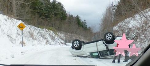 除雪してあるとはいえ、道路にも雪が積もっており、その下はアイスバーンになっていました。