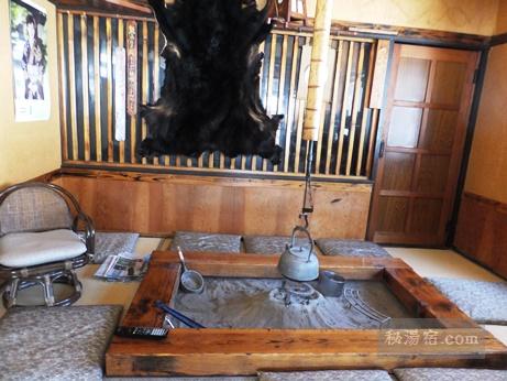 帳場と熊の毛皮が飾ってある囲炉裏。