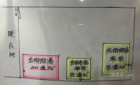 脱衣所内には浴室内の浴槽の見取図がありました。これは分かりやすい表示。