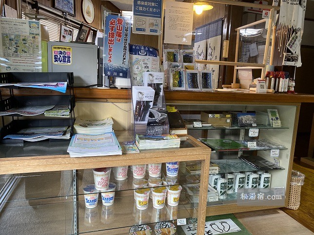 登山客用にカップラーメン、秘湯シャンプーくまざさセットも販売している。