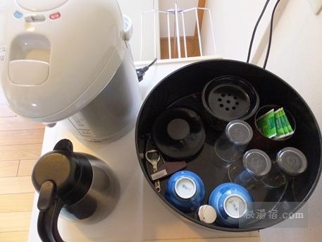 壁際には中型の空の冷蔵庫、電気ポットと冷水ポット。
