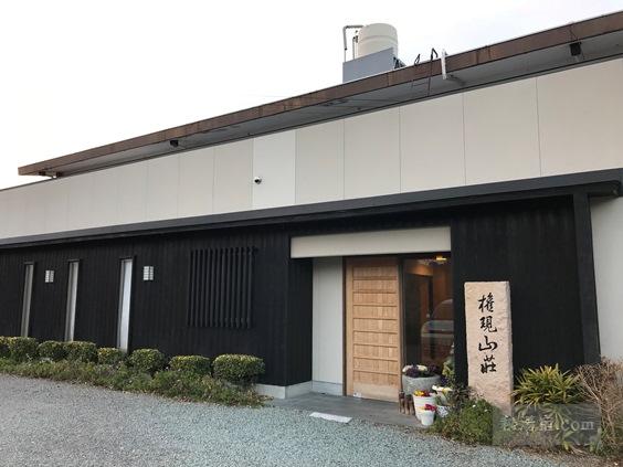 道後温泉から県道を北上すると左に「権現山荘入口」と書かれた看板が出ていますのでお見逃しなく。脇道を上がって50mほどの所に宿があります。