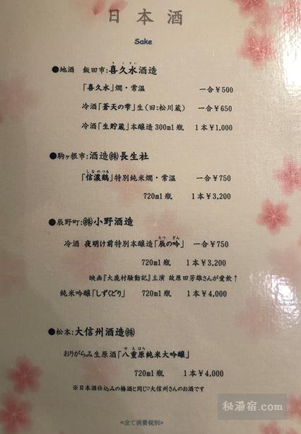 【鹿塩温泉 山塩館 ドリンクメニュー】