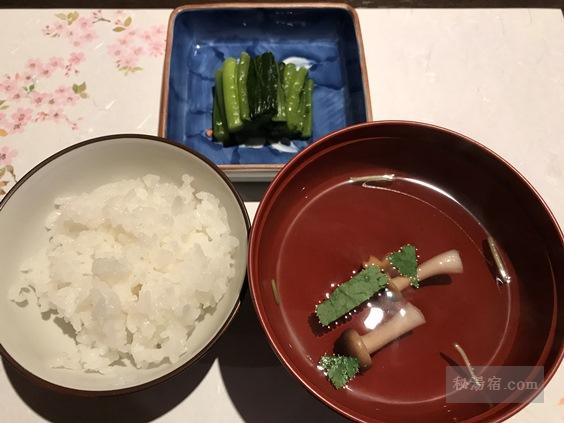 もしかすると一人だけ18:30からスタートにしたせいかもしれませんが、時間になると仲居さんが奥に引っ込んでしまうらしく、それに合わせて配膳しているという感じでした。18:00スタートにした方が良いかもしれません。