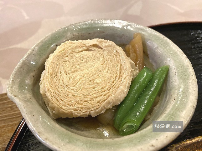 「揚げ巻き湯波」は油揚げの中身だけを丸めたような食感と味付けです。