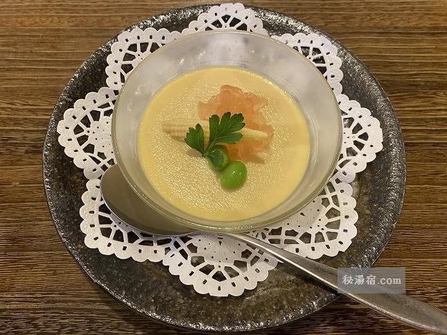 「とうもろこしと豆乳の冷製茶碗蒸し」