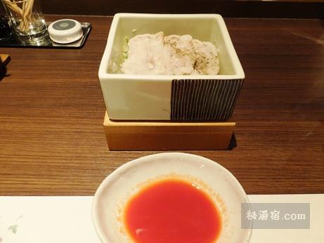 地獄蒸しのトマトたれと揚げ物にカレー塩というの創作料理風でしょうか。