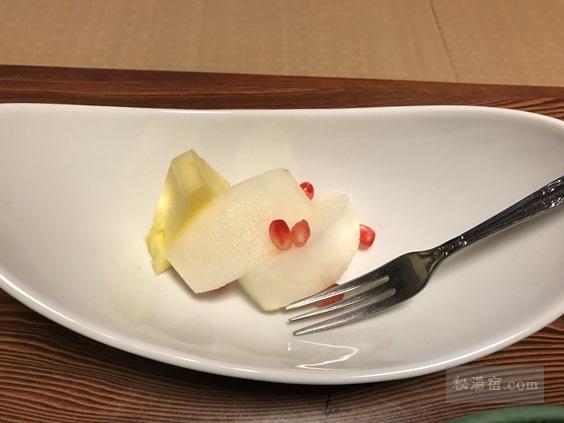 デザートは梨とパイナップル。赤い実はザクロかな。