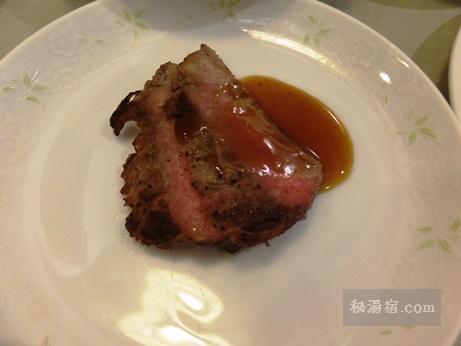 厨房ではステーキ焼いていました。味付はステーキソース、塩、わさび?の3種類