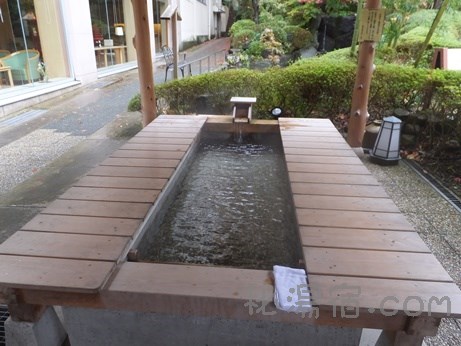 玄関前に足湯があります。