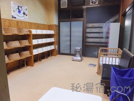 脱衣所。ベビーベッドと体重計、ストーブが置いてありました。