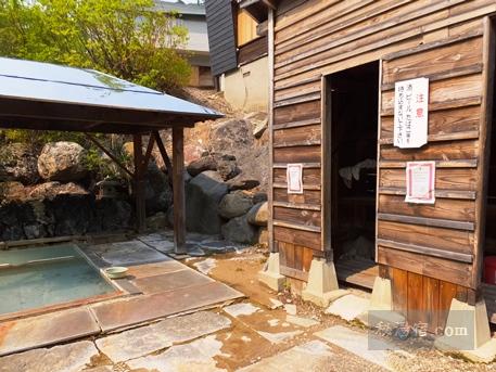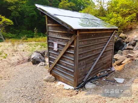 小屋の裏に回ると、中は脱衣所、外に屋根付の小さな露天風呂がありました。