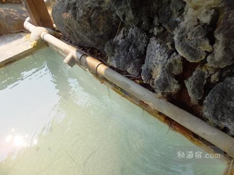 ほぼ野湯状態なので、葉っぱや木の枝が沈んでいます。