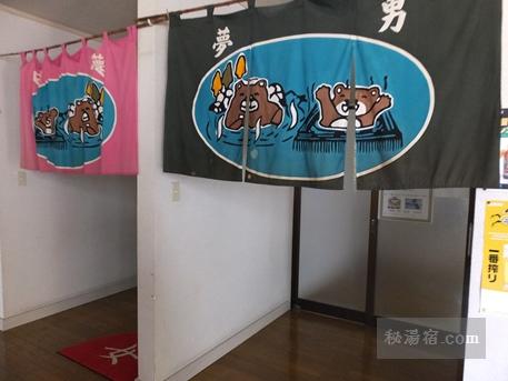 たぬきのマークに「夢 男」「夢 女」と書かれた入口ののれん。