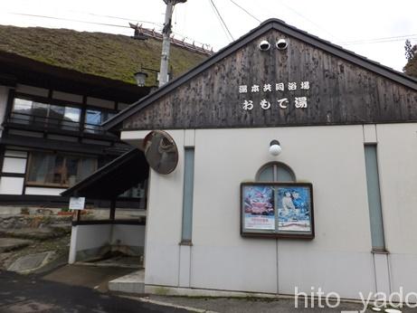奥の茅葺屋根が「湯口屋」、手前にあるトイレのような建物は共同浴場です。