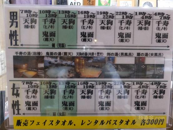 こんな感じで3時間毎に男女入替えとなっています(季節により時間は変更されます)。