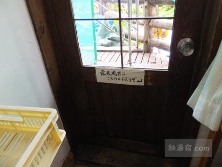 ちょっと雑然とした食堂を抜けると露天風呂の入口のドアがあるので、一旦外に出ます。