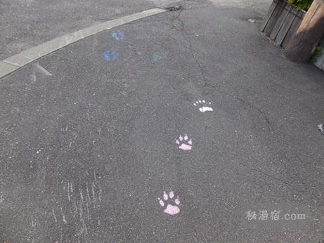 温泉街の歩道には、北海道の野生動物の足跡がペイントされています。