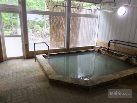 笹濁りのお湯で金気臭がやや強め、ほんのり塩味がします。