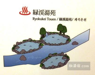 見取図の右下に小さくある水色のイラストは外湯の「緑渓湯苑」です。