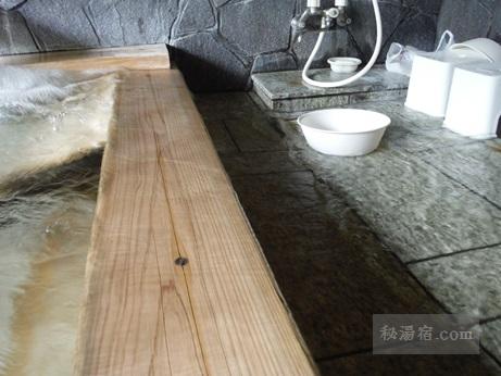 浴室は4畳半ほどのスペースに2~3人は入れる檜風呂の浴槽があります。