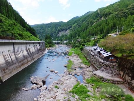 中庭から川側に歩いていくと、杖立温泉の街並みが見えました。