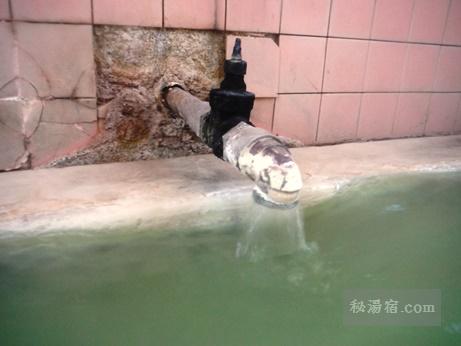 お湯はやや白濁したうぐいす色。透明度は30センチくらい。
