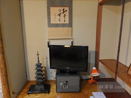床の間にはテレビと金庫、電気スタンド。