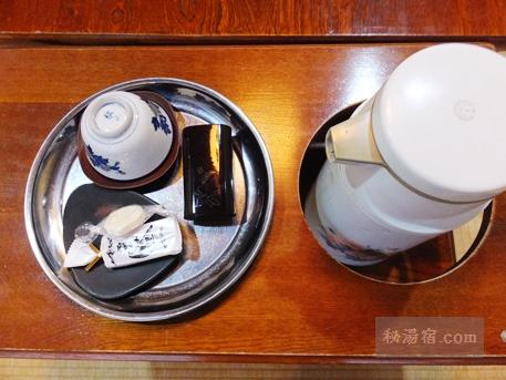 左は、お茶セットとお茶請け、夕食後には冷水ポットが置かれていました。