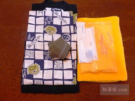 右は、浴衣とタオルセット。アメニティは歯ブラシとヘアブラシでした。