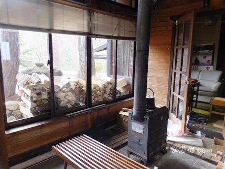 玄関には薪ストーブ。