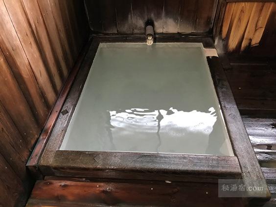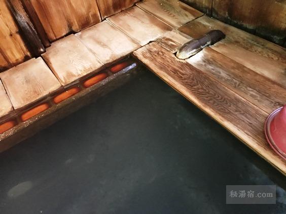 お湯はほぼ透明ですが、底の方にわずかに湯花が沈殿しています。