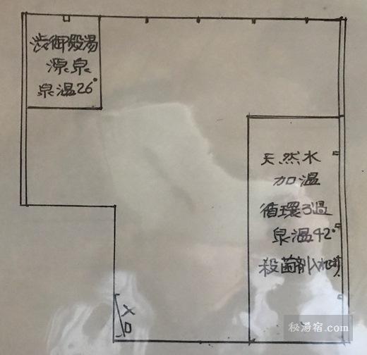 態様:源泉槽は源泉かけ流し、加水・加温なし、塩素消毒なし