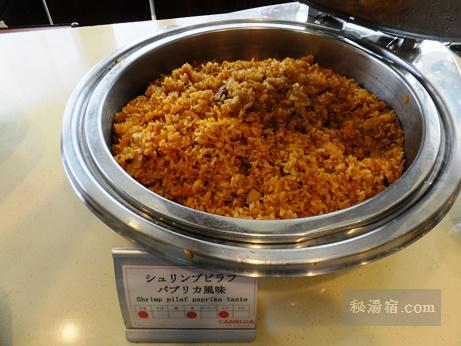 エントランスの正面に「カフェテラス カメリア」があり、「温泉+ランチブッフェ」のセットプランがあるという看板に釣られフラフラとレストランに入りました。