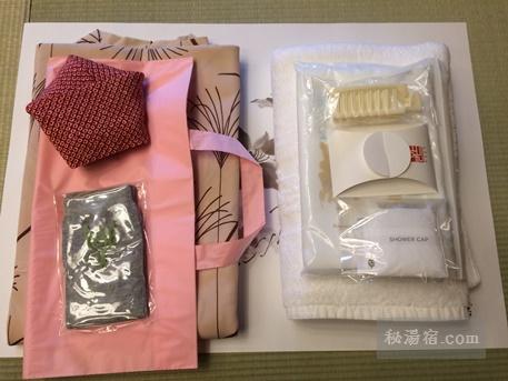 アメニティは足袋靴下、ヘアブラシ、シャワーキャップ、女性用に使いきりの化粧品が入っていました。