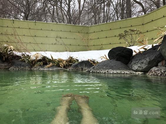 露天風呂の方はグリーンの透明なお湯で湯花もあまり舞っていませんでした。