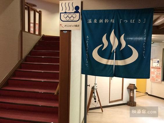 正面には「温泉新幹線『つばさ』と書かれた暖簾があり奥には「露天風呂」があります。