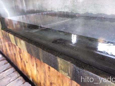 透明なお湯ですが、岩にこびりついた析出物が泉質の濃さを物語っています。