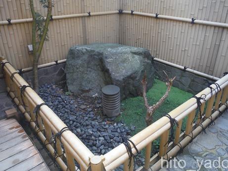 反対皮の屋根のないスペースにはミニ石庭。