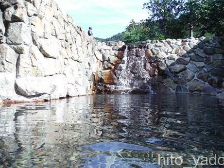 浴槽の1/4は石垣になっており、上から滝のようにお湯が注がれています。
