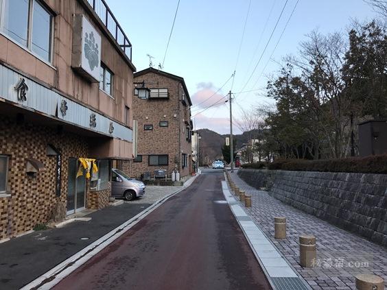 ナビで設定するとこちらの旅館の前のあたりで案内が終わり、隣りの路地は狭くて入れず、どこに入口があるのかと迷うかもしれません。