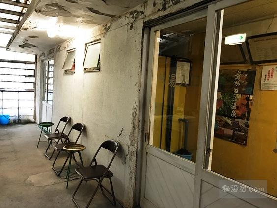 受付から裏手に回ると鄙びた廊下に男女別の入口(2017年3月の写真)。