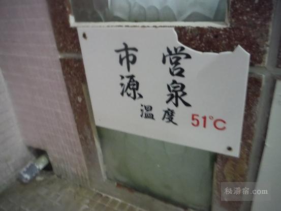 源泉名「郡山市営第1号泉、第4号泉、第5号泉、第7号統合泉(統合比 1,4,7号:5号=3:1)」泉温50.4度(気温28度) 湧出量 測定不能-(-)
