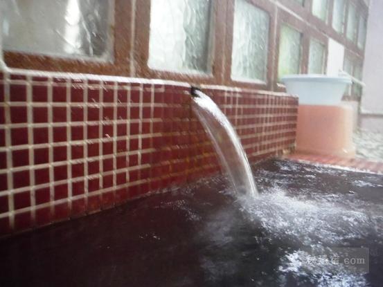 写真左の角からは隣のあつ湯の浴槽からパイプが引かれ、10センチ四方だけ38度のぬる湯になっていました。